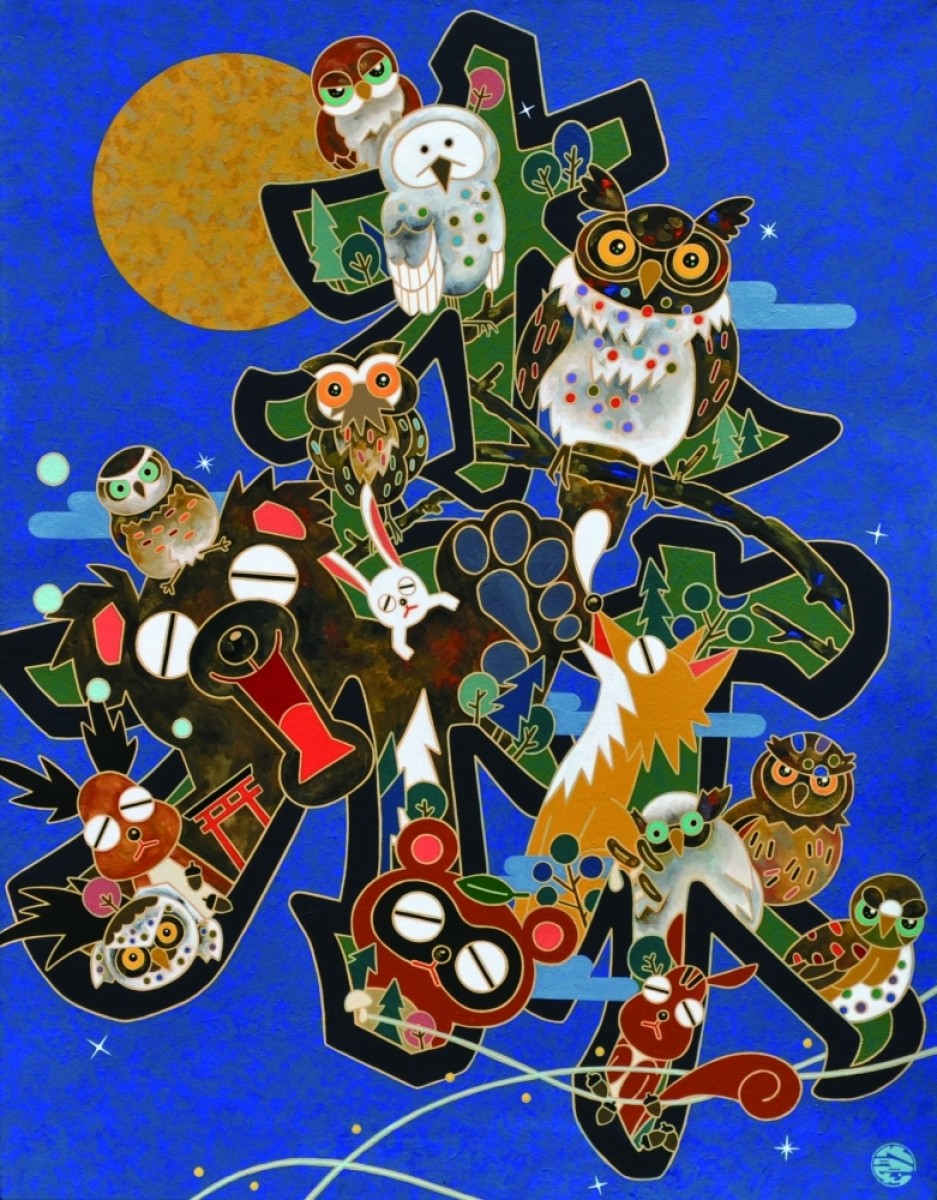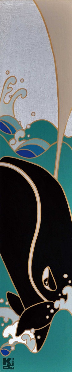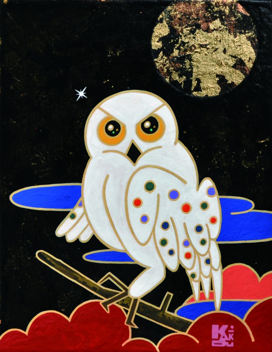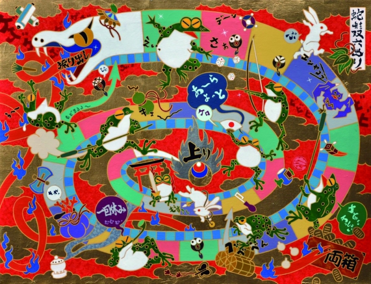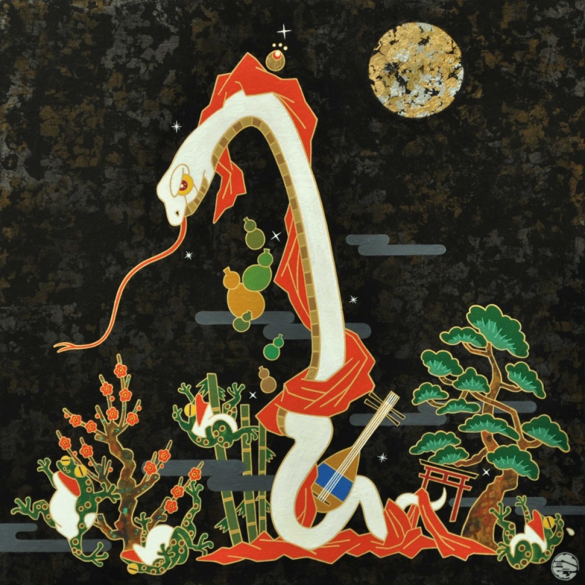 キャンバスにアクリル、金箔、箔、純金泥
