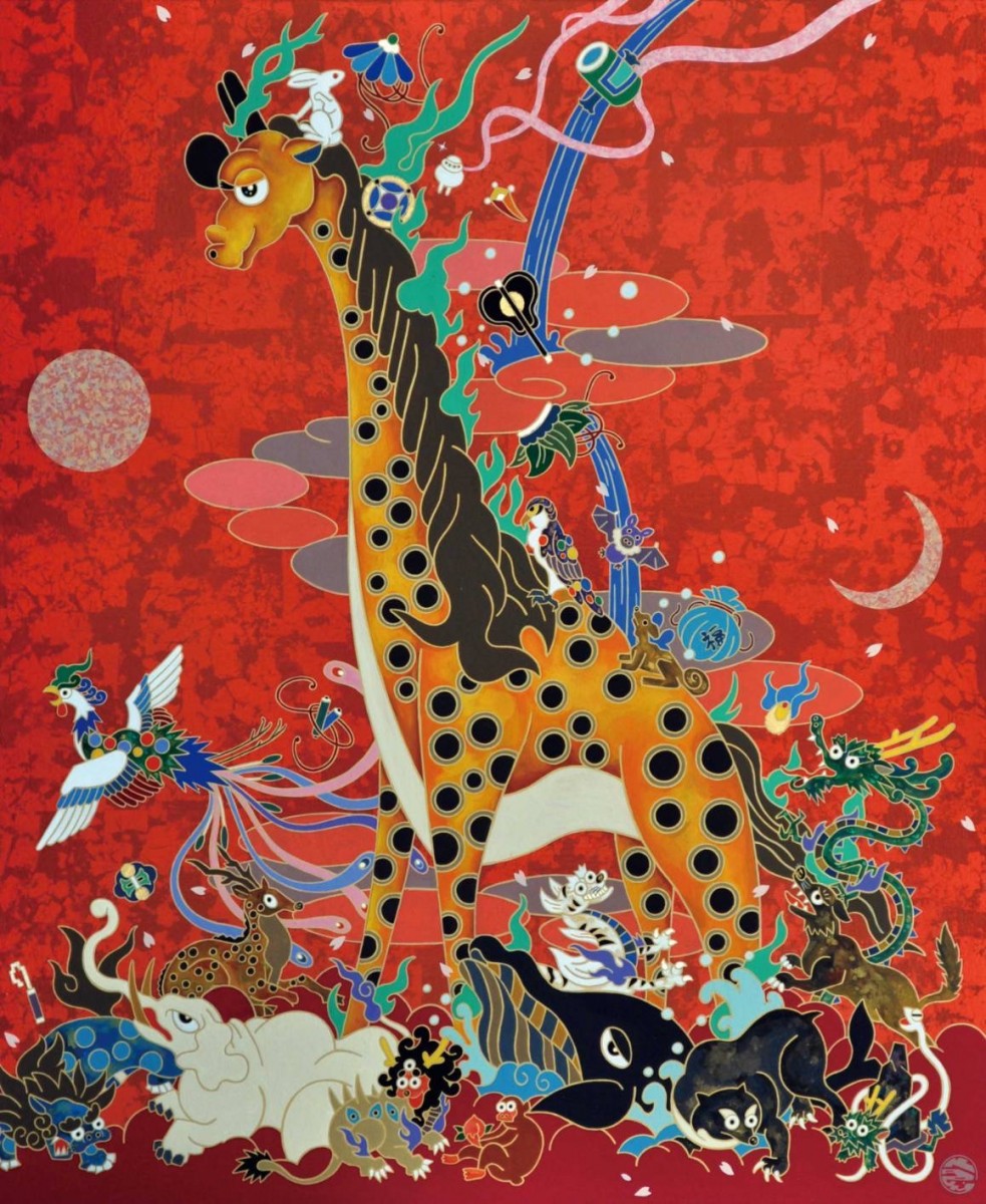 「 赤富士龍群獣図 」