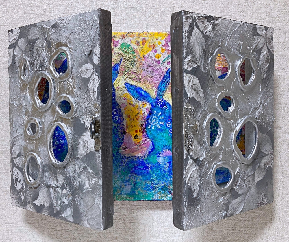 扉を閉めた状態で穴から見え隠れするところから想像して楽しむことがメインではありますが、扉の開閉は可能で、開けた状態、半開け状態、片方だけ開けるなどニュアンスを変えれます。