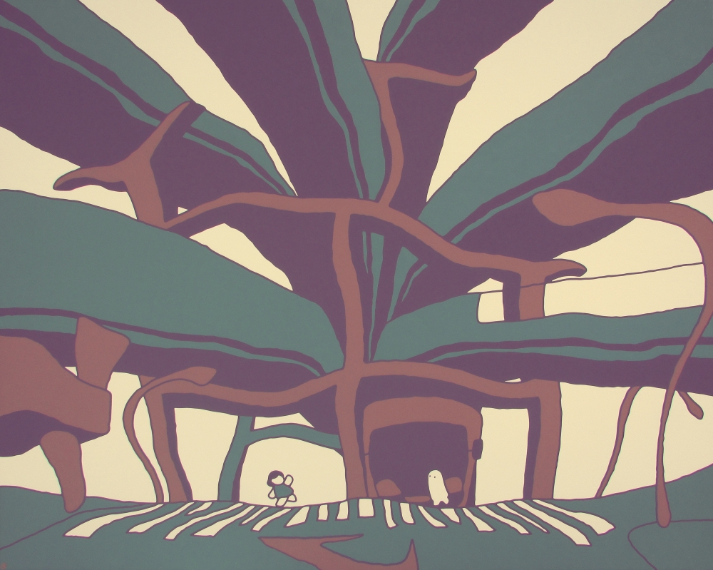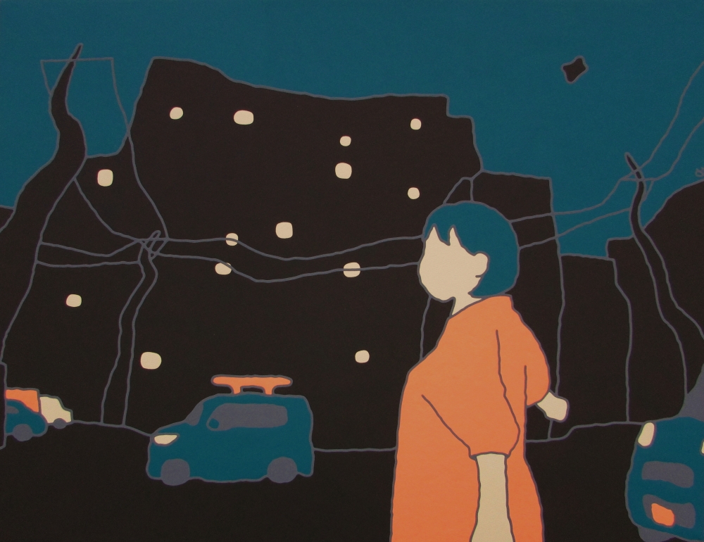 - 架空の風景と女の子と人を描きました。